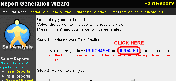 - Click on the Personal Self link, which opens up a Report Wizard on the right frame.