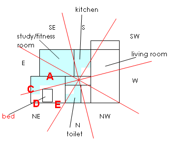 Marking `A' preferably your bedroom door should be located here.