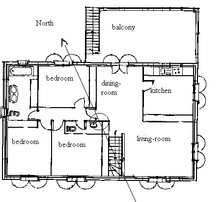 I am really confused, as you can see. The others parts of the house seem simple to me. Even the first floor, because it is not habited, and the door within the main entry in front of the main door is quite always shut.